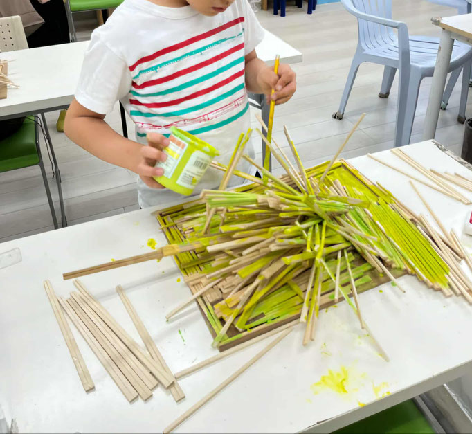 🐼 そして、もうひとつ私たちが決めていること、それは「美術作品を手伝わない」こと。(大人が手を加えない)、子どもたちに言葉かけはたくさんします、でも描いたり造ったりするのは自分自身の手で。自分のしたい表現を思いっきりやってみることができる。だからこそ自分の力で完成した時の喜びはとても大きいものなのです。
