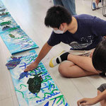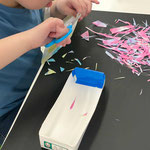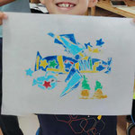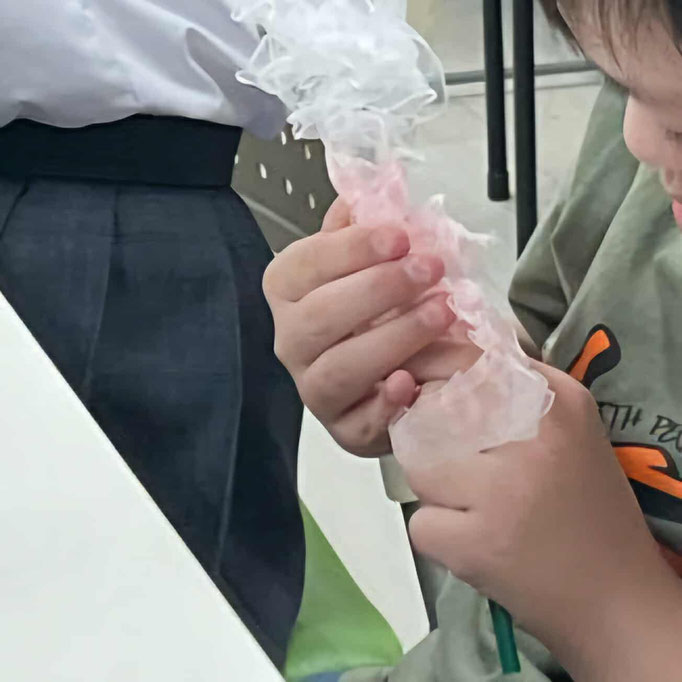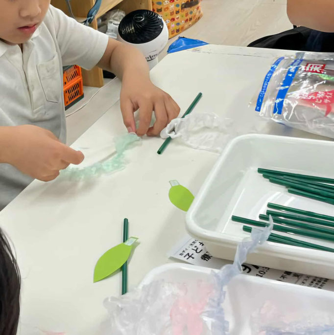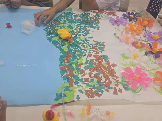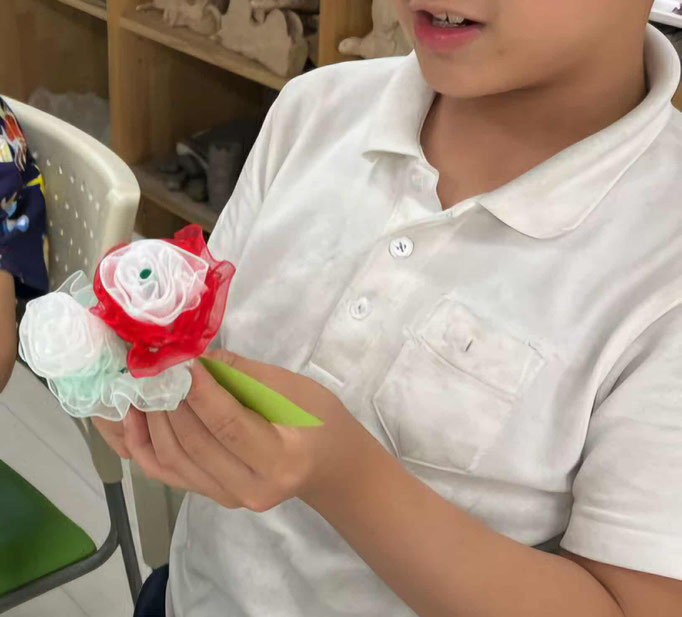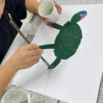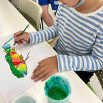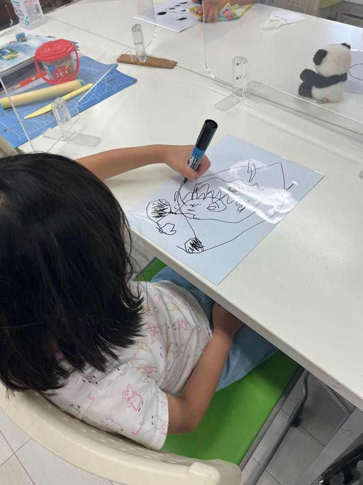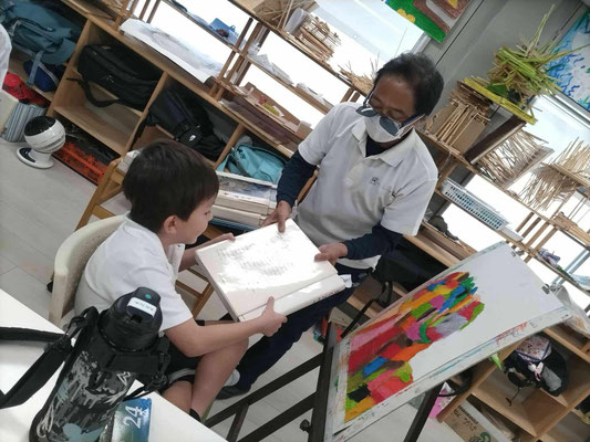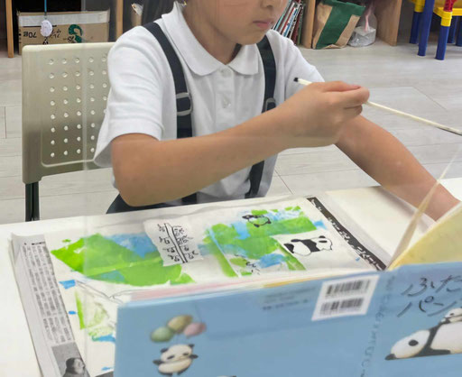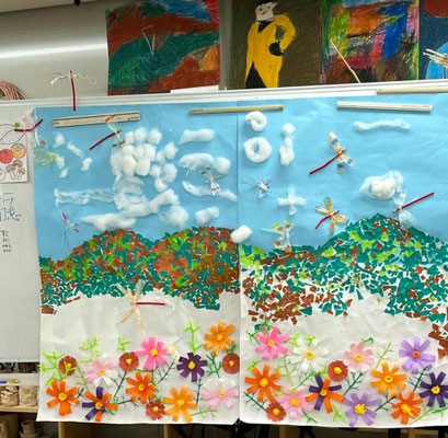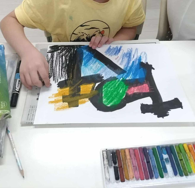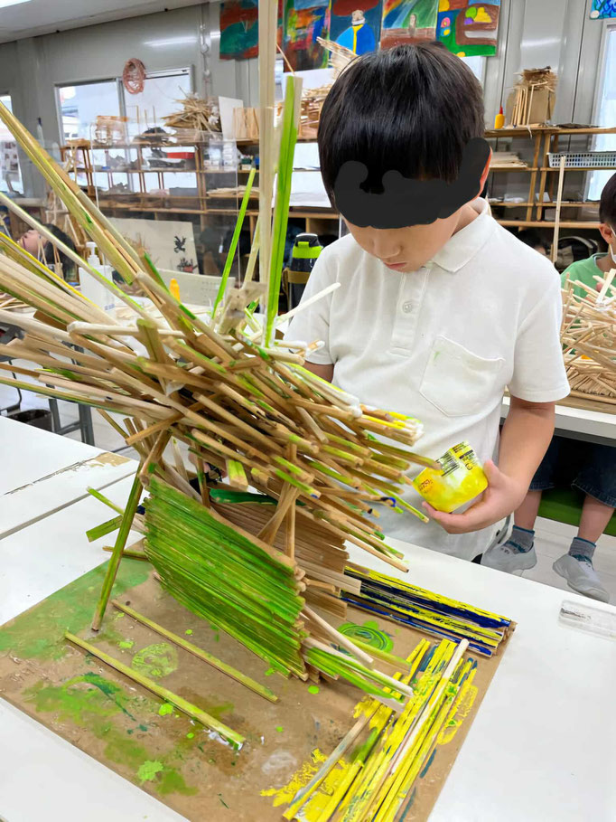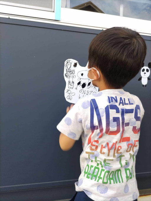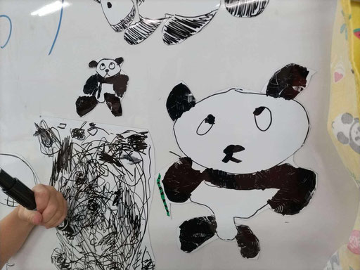 🐼 そして、もうひとつ私たちが決めていること、それは「美術作品を手伝わない」こと。(大人が手を加えない)、子どもたちに言葉かけはたくさんします、でも描いたり造ったりするのは自分自身の手で。自分のしたい表現を思いっきりやってみることができる。だからこそ自分の力で完成した時の喜びはとても大きいものなのです。